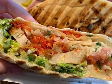 Marinated Chicken, Pico de Gallo, Garlic Sauce, Lettuce & Feta cheese (GF Option: Chicken Shawarma Bowl, same toppings on rice)