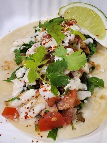 Marinated Chicken, Flaming Hot Cheeto Dust, Pico de Gallo, Mozza Cheese, Lettuce, and garlic mayo (GF Option: Flaming Hot Chicken Cheeto Bowl, same toppings on rice)