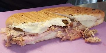 Slow Smoked Pork, thin sliced Ham, Provolone cheese, Sweet Pickles and Dijonnaise on a Grilled Sub Roll