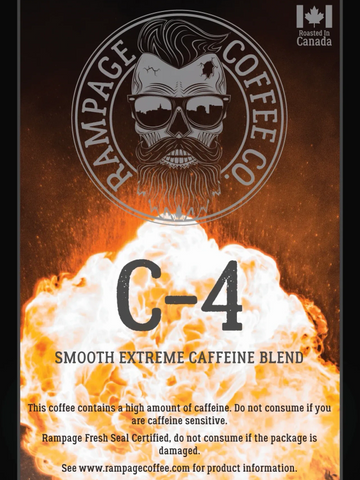 In the C - 4 blend you will find premium South American and South Asian coffee beans specifically blended in a way that will punch you out of your morning slippers. Be careful with this blend as it is our highest caffeine blend and it has been known...